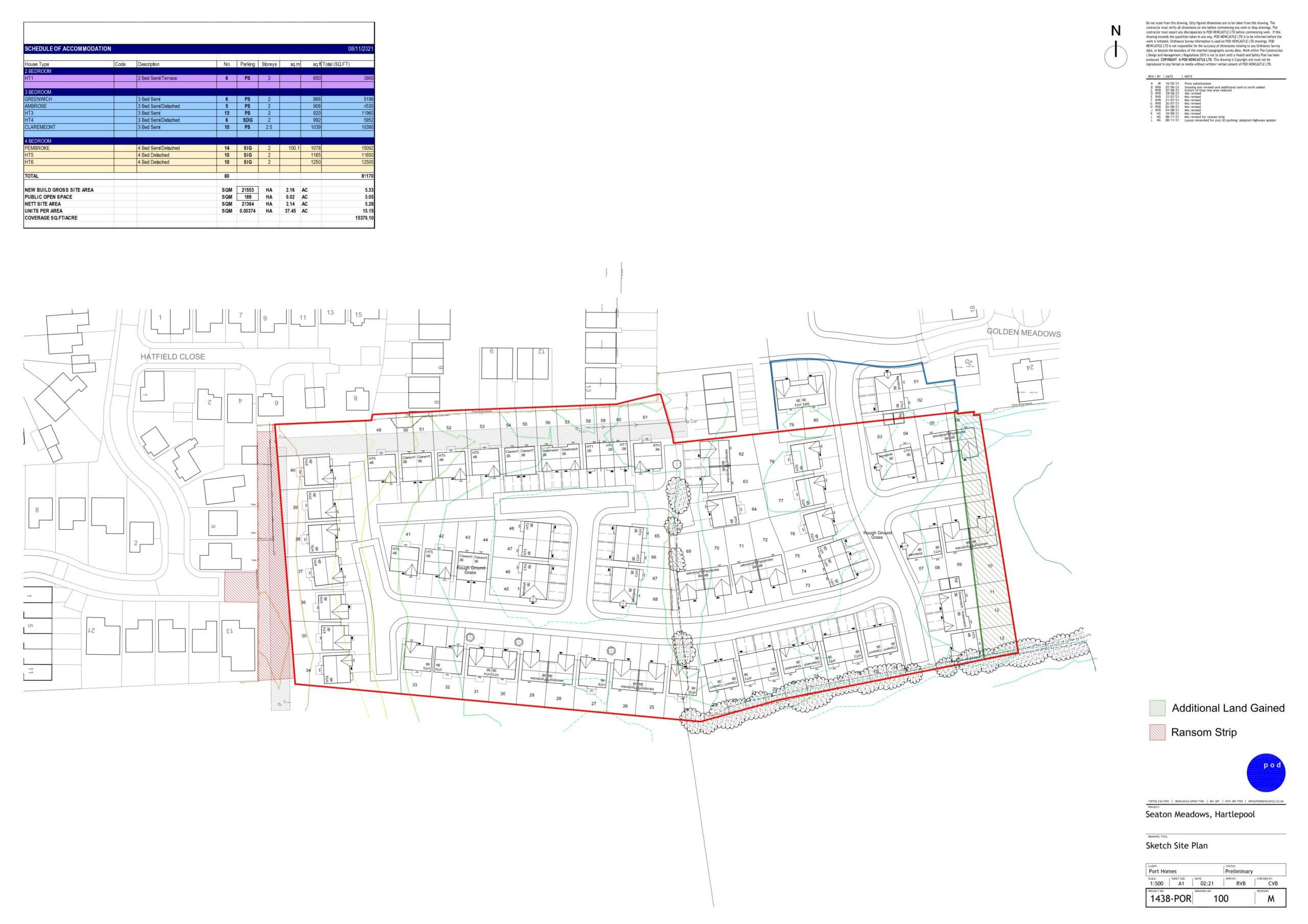Port Homes have purchased land from Hartlepool Borough Council to further extend their existing residential development at Seaton Meadows. An access road is proposed through the existing development to the land.